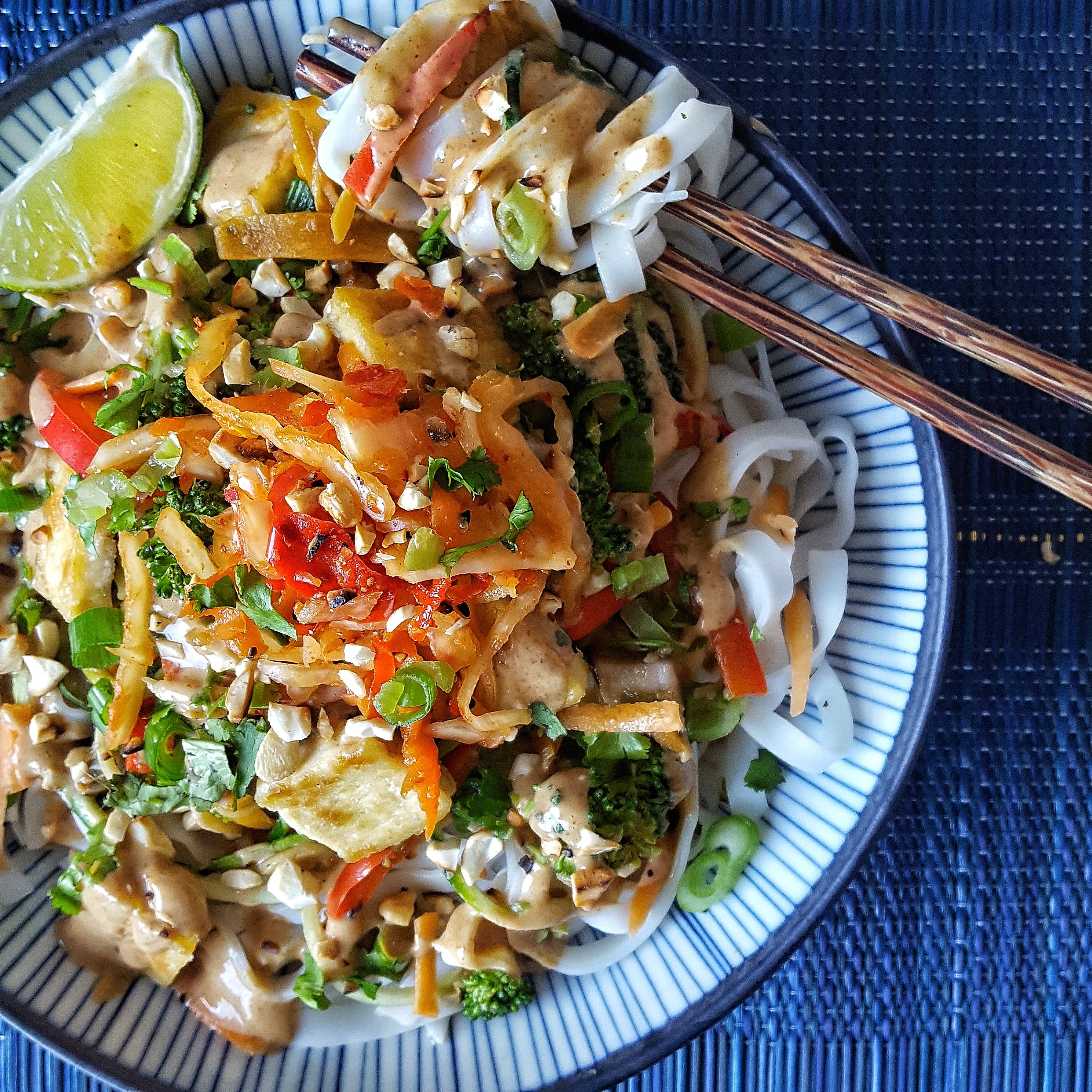 - Add the cooked noodles, peanut sauce, spring onion and fresh coriander. Toss gently to combine. Heat until warmed through.